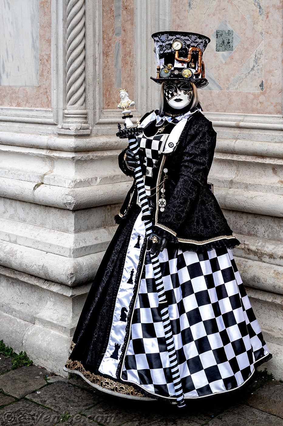 Sa robe en damier noir et blanc, représentait de manière appropriée un échiquier.