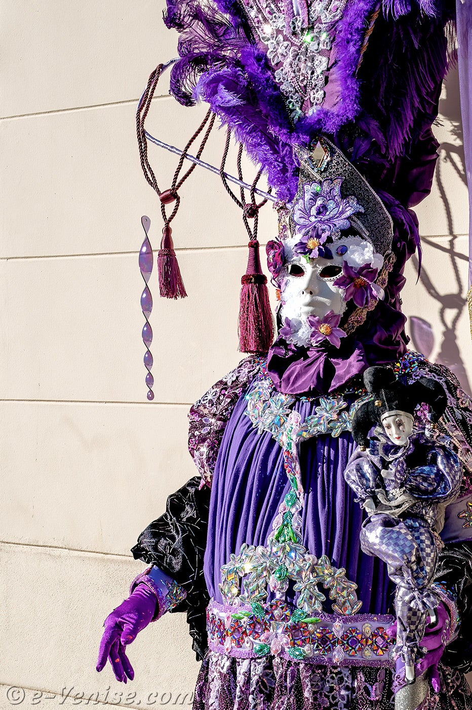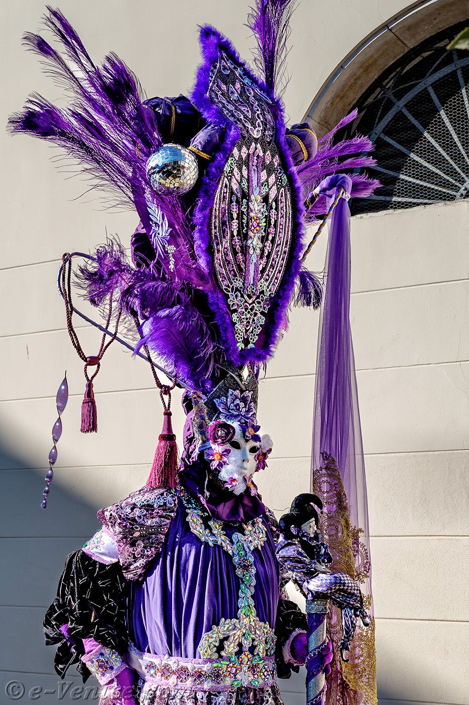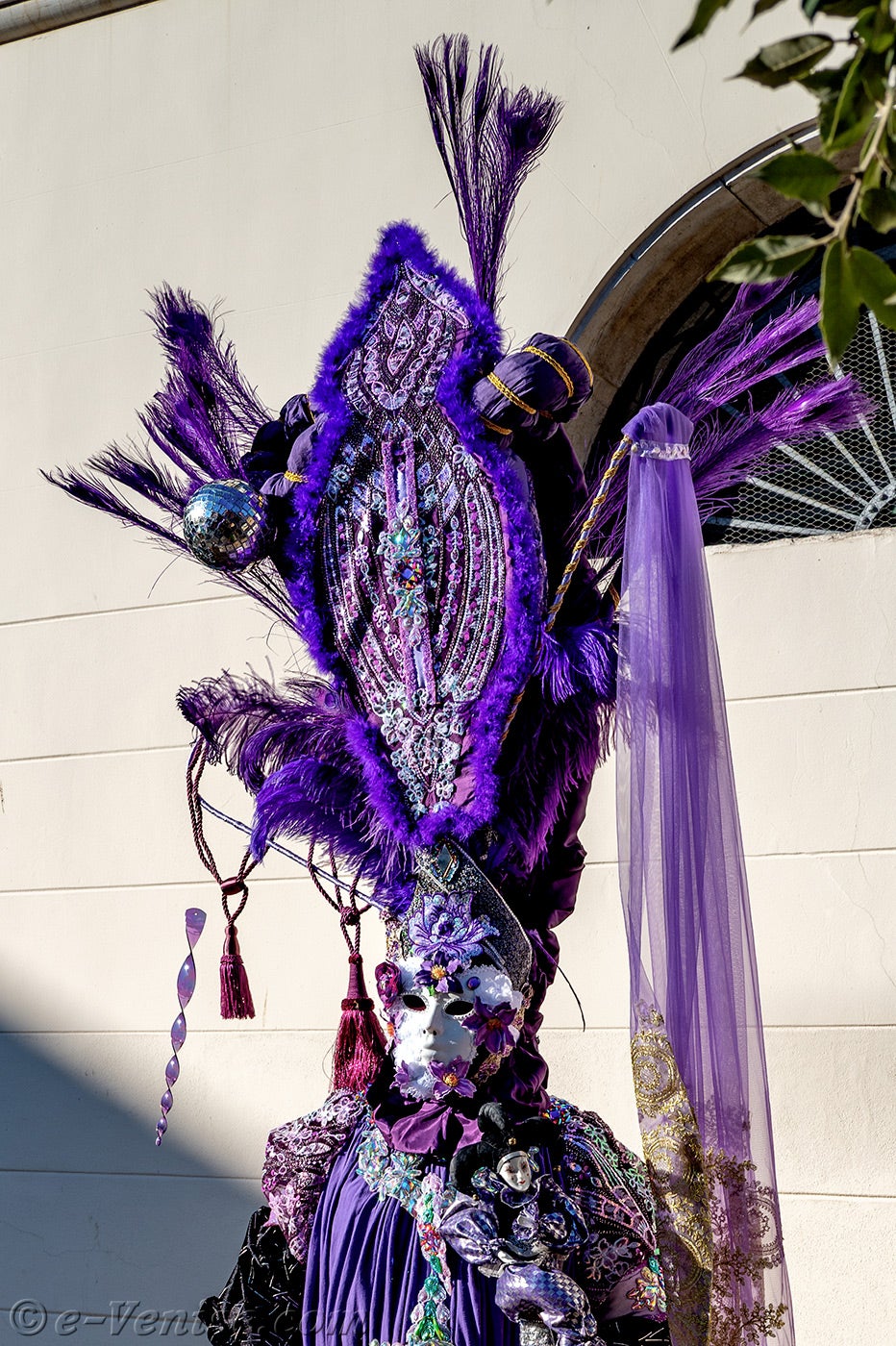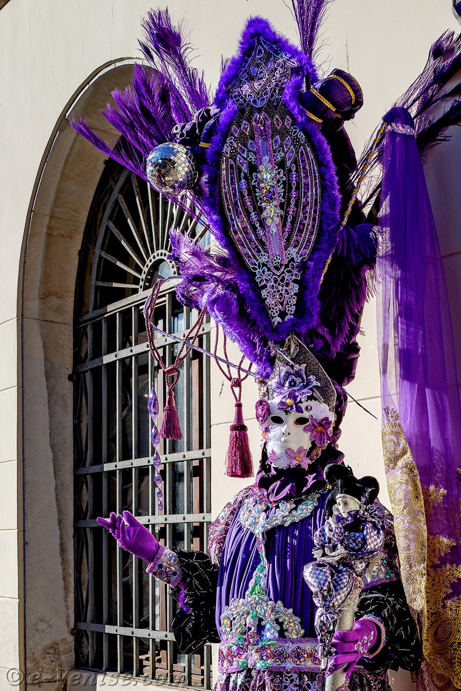 Avec une coiffe presque aussi haute que son corps, brodée avec des fleurs, des bijoux et des plumes de couleur mauve, ce personnage imposant, armé d'un bâton décoré d'un fou royal, a fait le bonheur des spectateurs du Carnaval de Venise 2026 sur le Campo San Lorenzo.Un couple de pirates vêtu de costumes beige et marron, tout simplement superbes, nous a tout autant enthousiasmés.