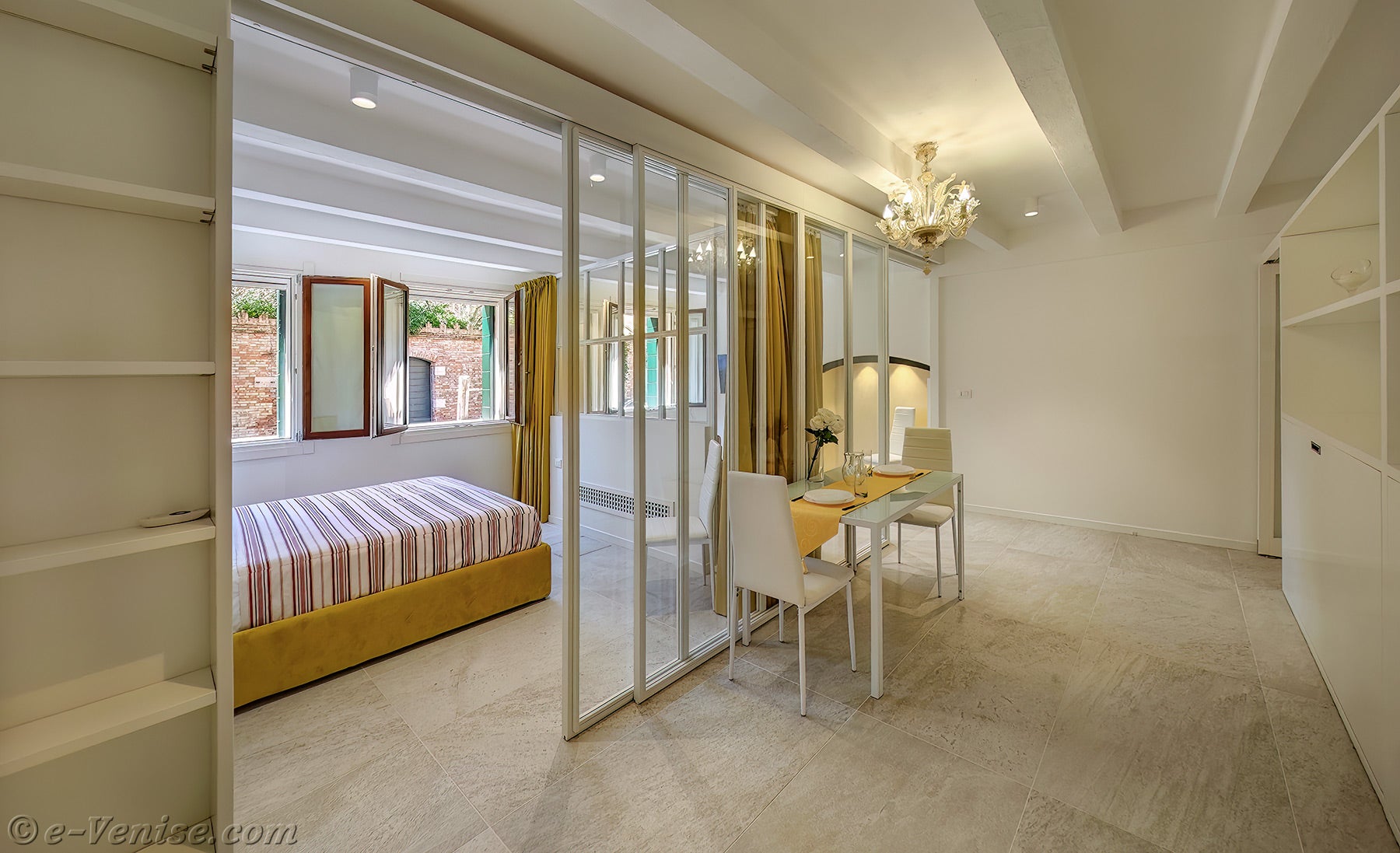 Bien que l’appartement soit situé au rez-de-chaussée, soyez assuré qu’il n’est pas exposé aux inconvénients de l’Acqua Alta.